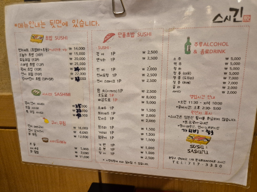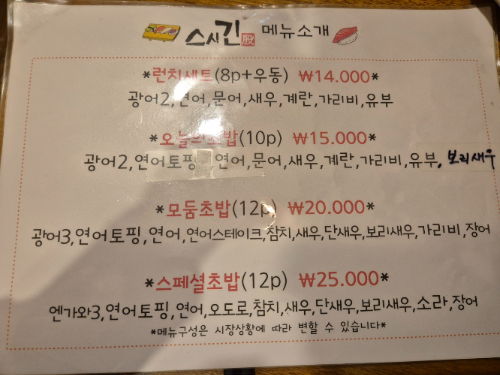 가격대는 일반적인 초밥집 가격과 비슷했으며 우동이 조금 싸다고 생각이 들었고,