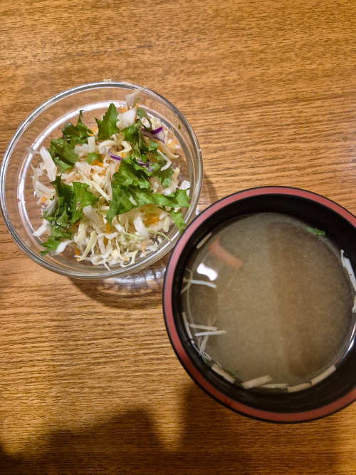 샐러드는 투박하게 썬 양배추가 베이스이며 고소한 기름향이 좋았다.